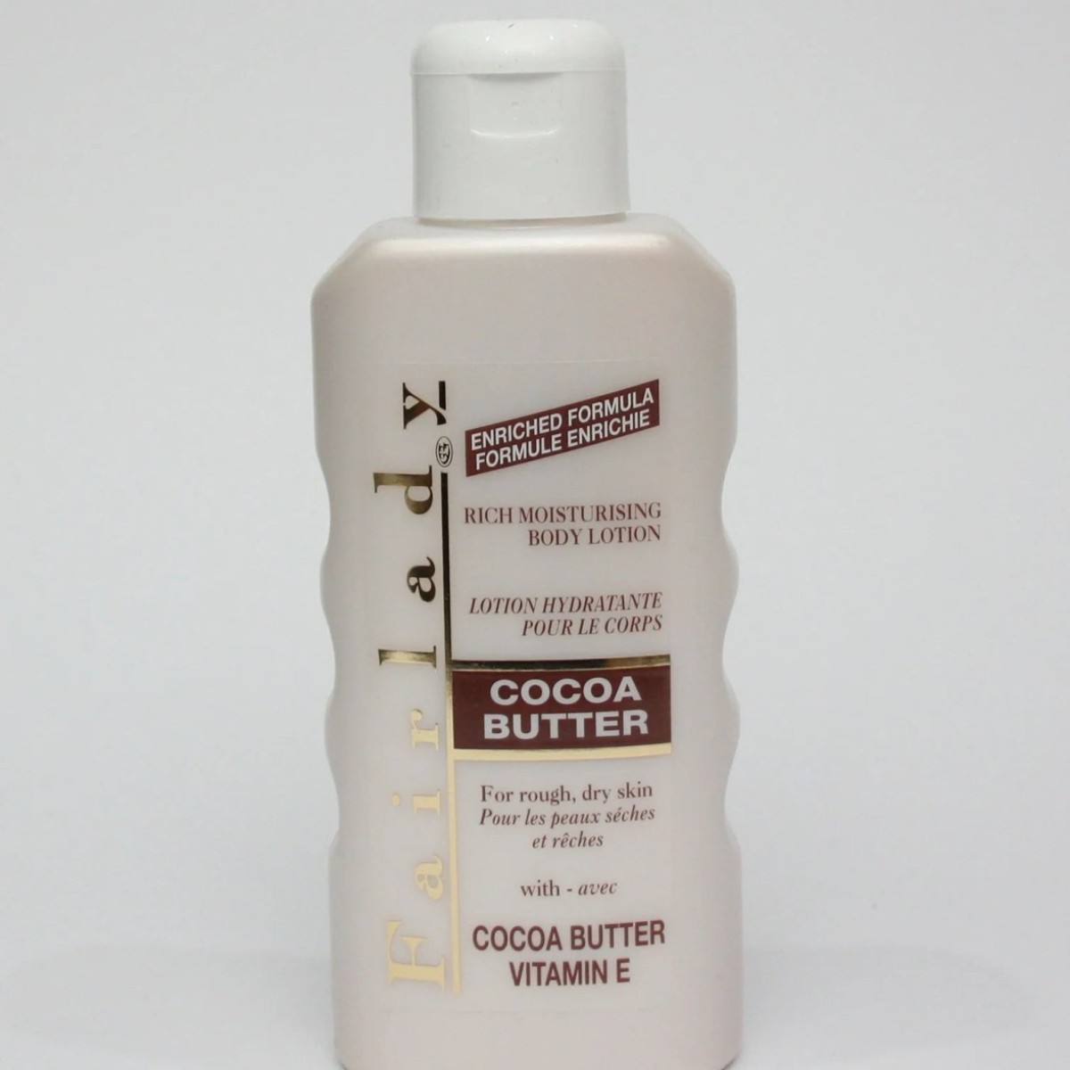 Deeply moisturise and nourish your skin with Fair Lady Cocoa Butter. Enriched with pure cocoa butter, this rich formula helps soften, hydrate, and maintain smooth, healthy, and radiant skin. Suitable for daily use on all skin types.